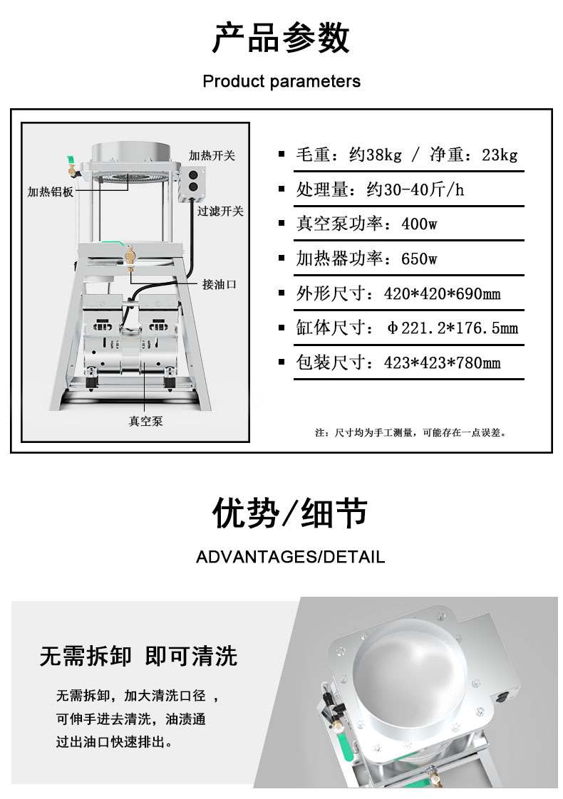 ✅ 高效过滤:不锈钢滤网+滤布,精准拦截油渣、油渣分离。